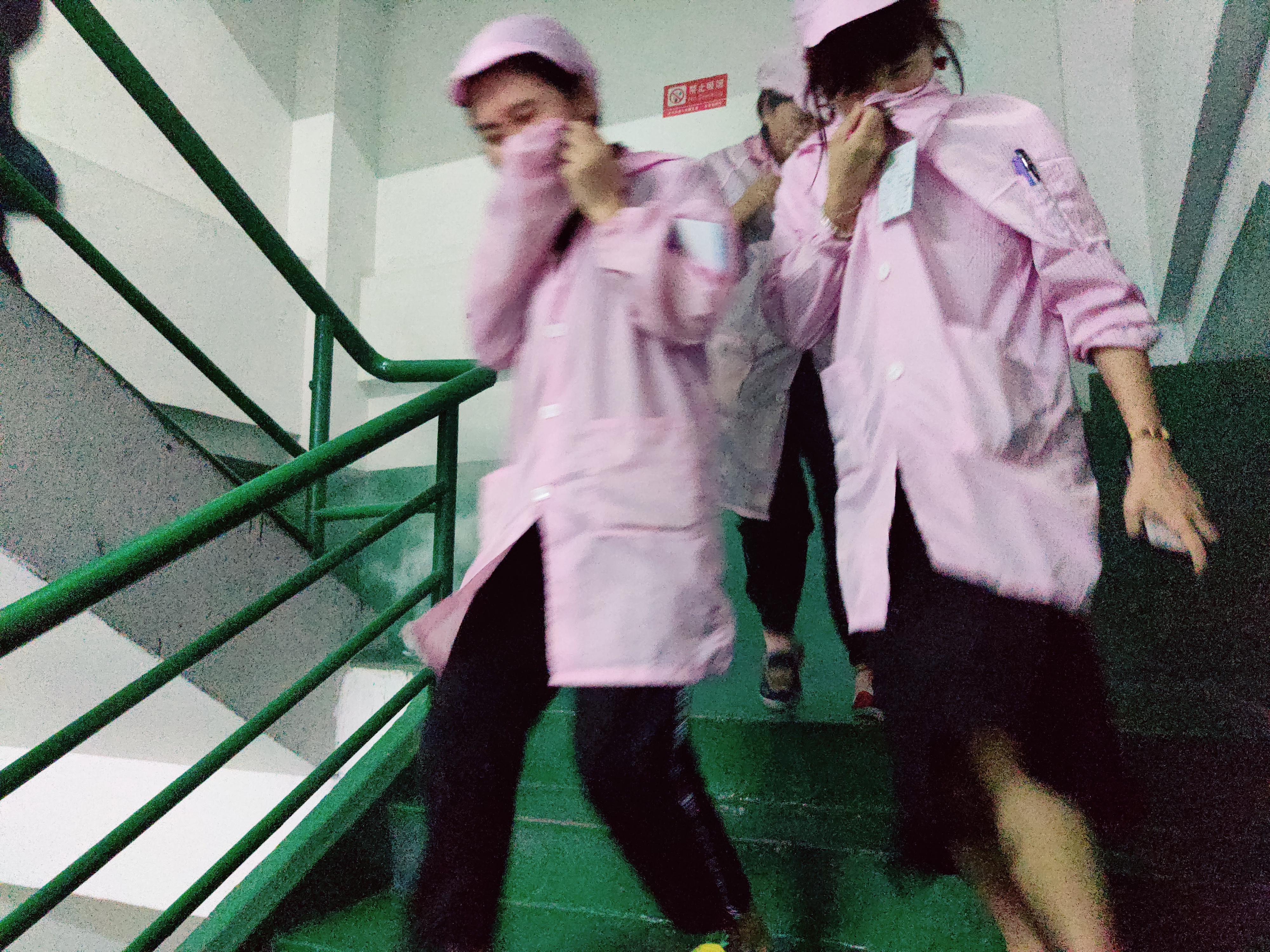 隨著火災警報響起,公司全體人員立即按照火災應急預案組織人員疏散撤離。疏散演練完畢后,到達指定地點集合,清點人數(shù)。