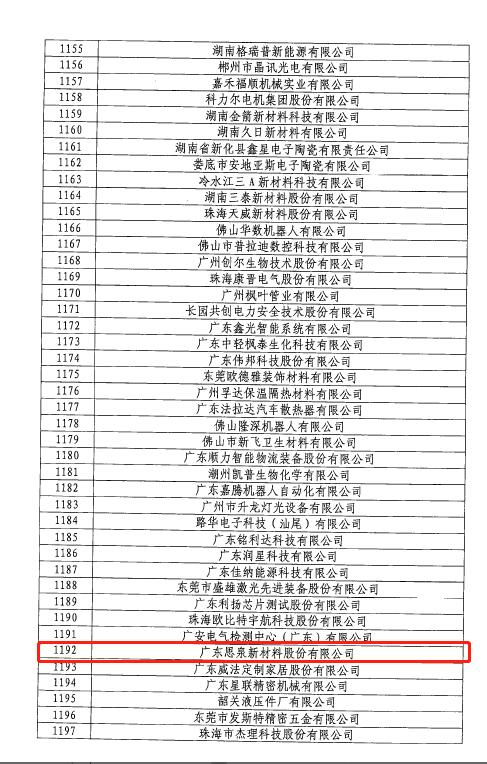 2020年12月,根據(jù)中華人民共和國(guó)工業(yè)和信息化部發(fā)布的通告,思泉新材獲得第二批專精特新“小巨人”企業(yè)的稱號(hào)。